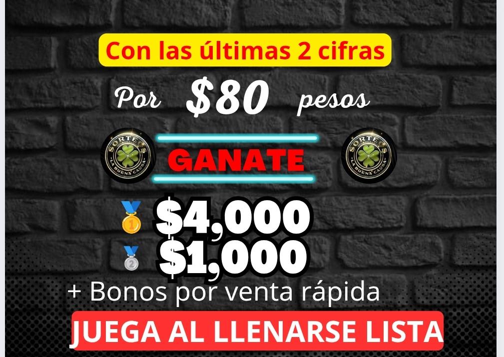 $1,000 EXTRA A CADA GANADOR SI SE VENDEN TODOS LOS BOLETOS AL DIA DOMINGO.